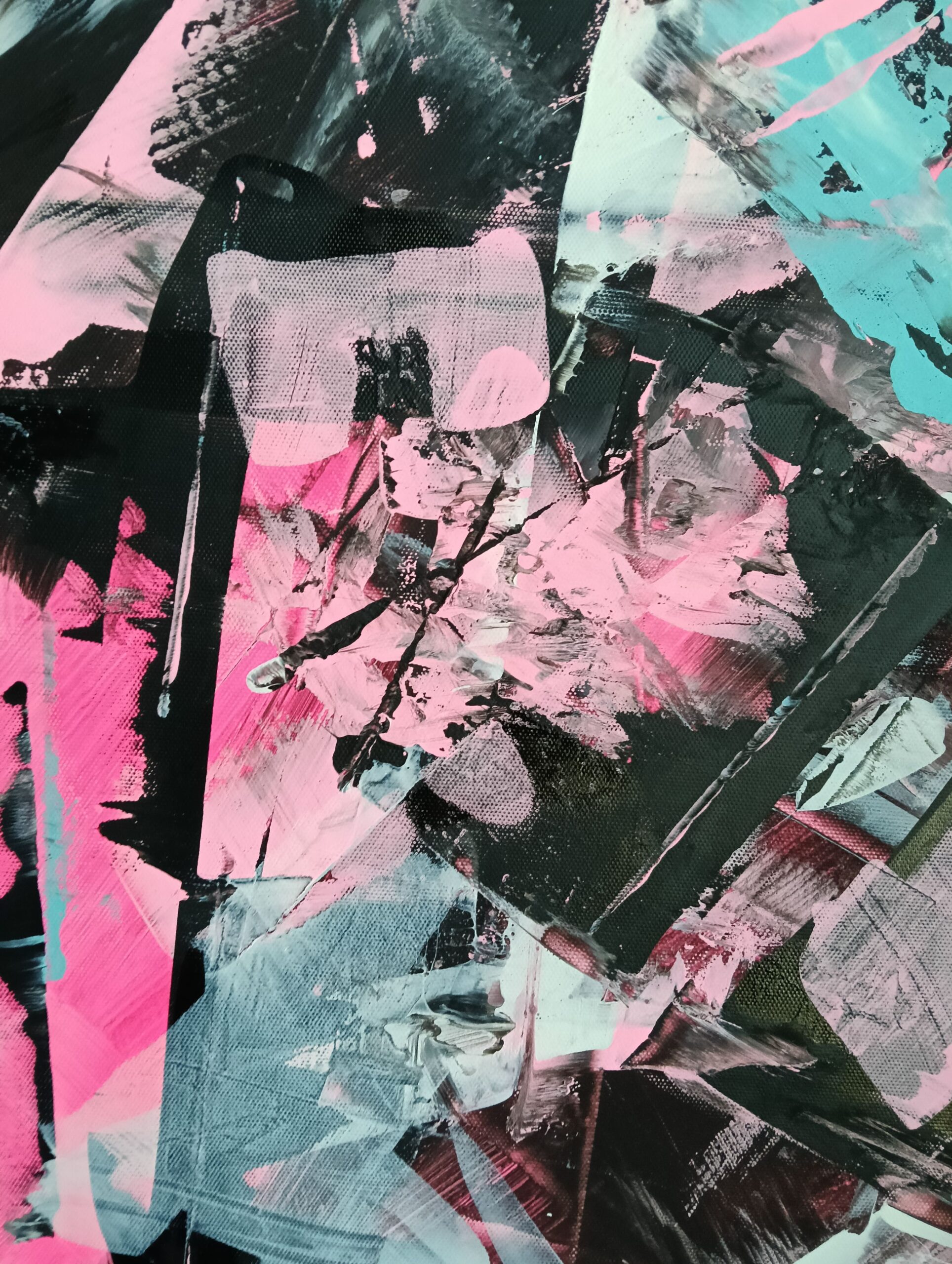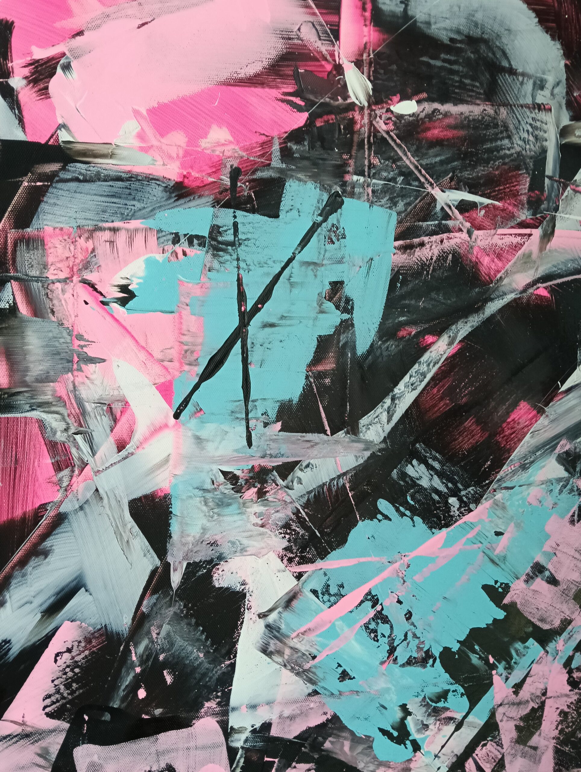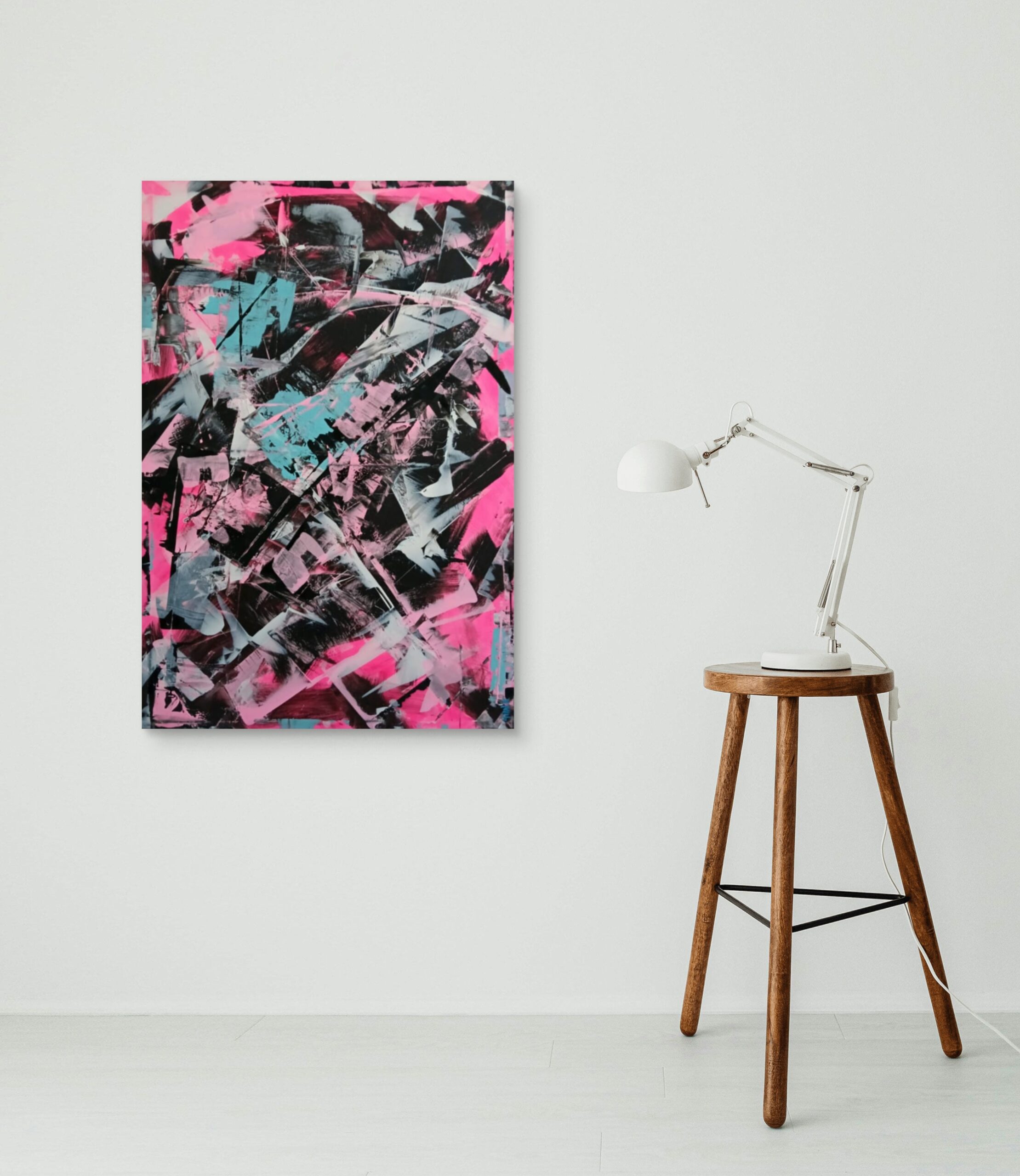 “An Evening In Tokyo Vol.2”- emerges as a captivating abstract composition, embodying the essence of a romantic rendezvous in the heart of Tokyo through a play of shapes and colors.