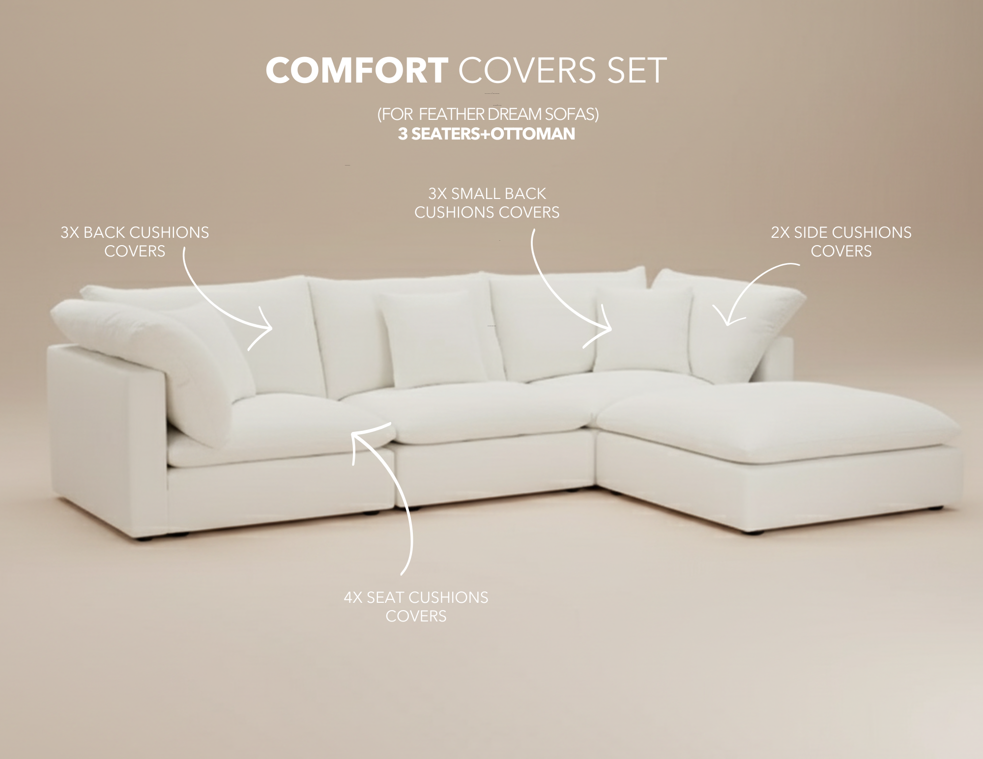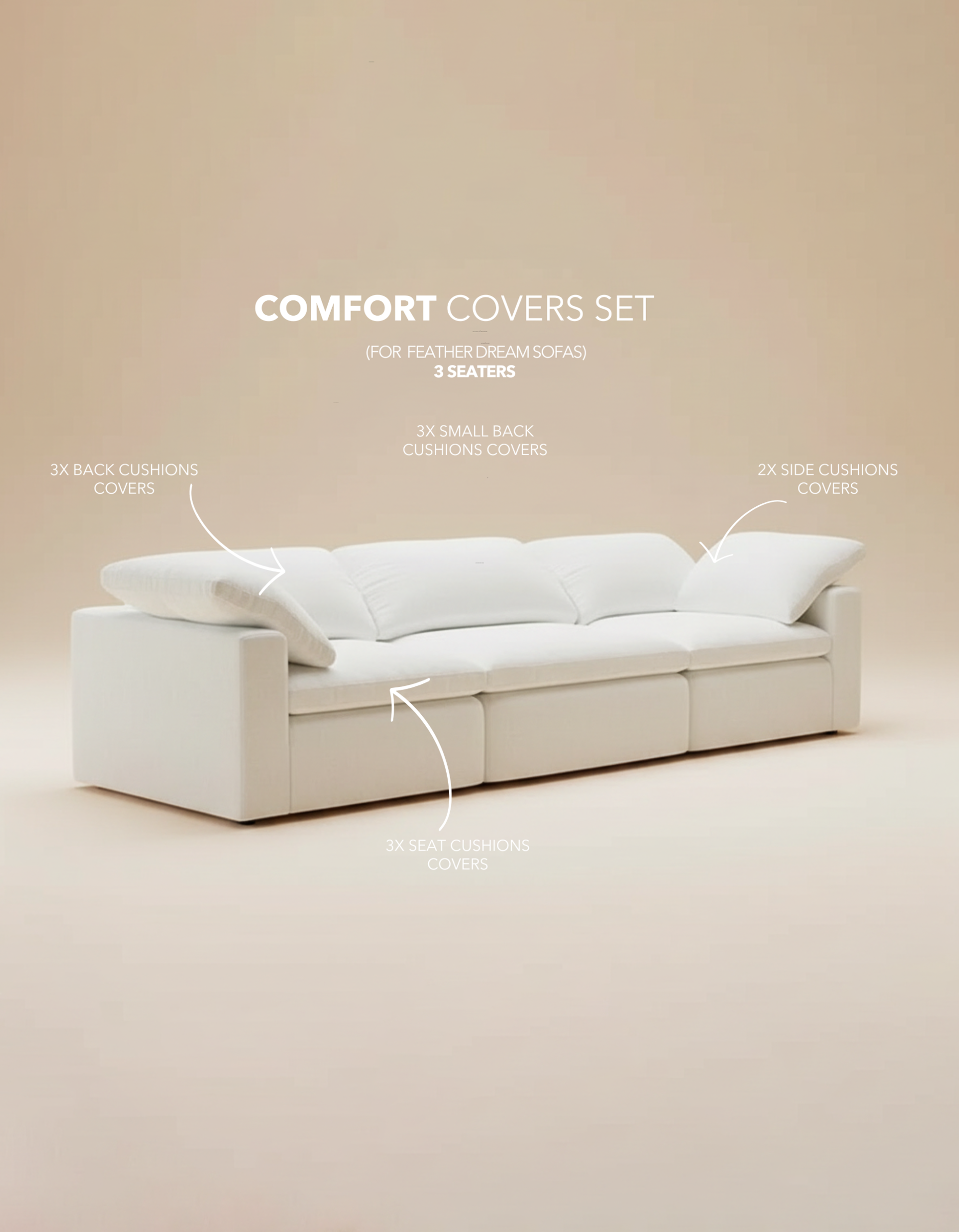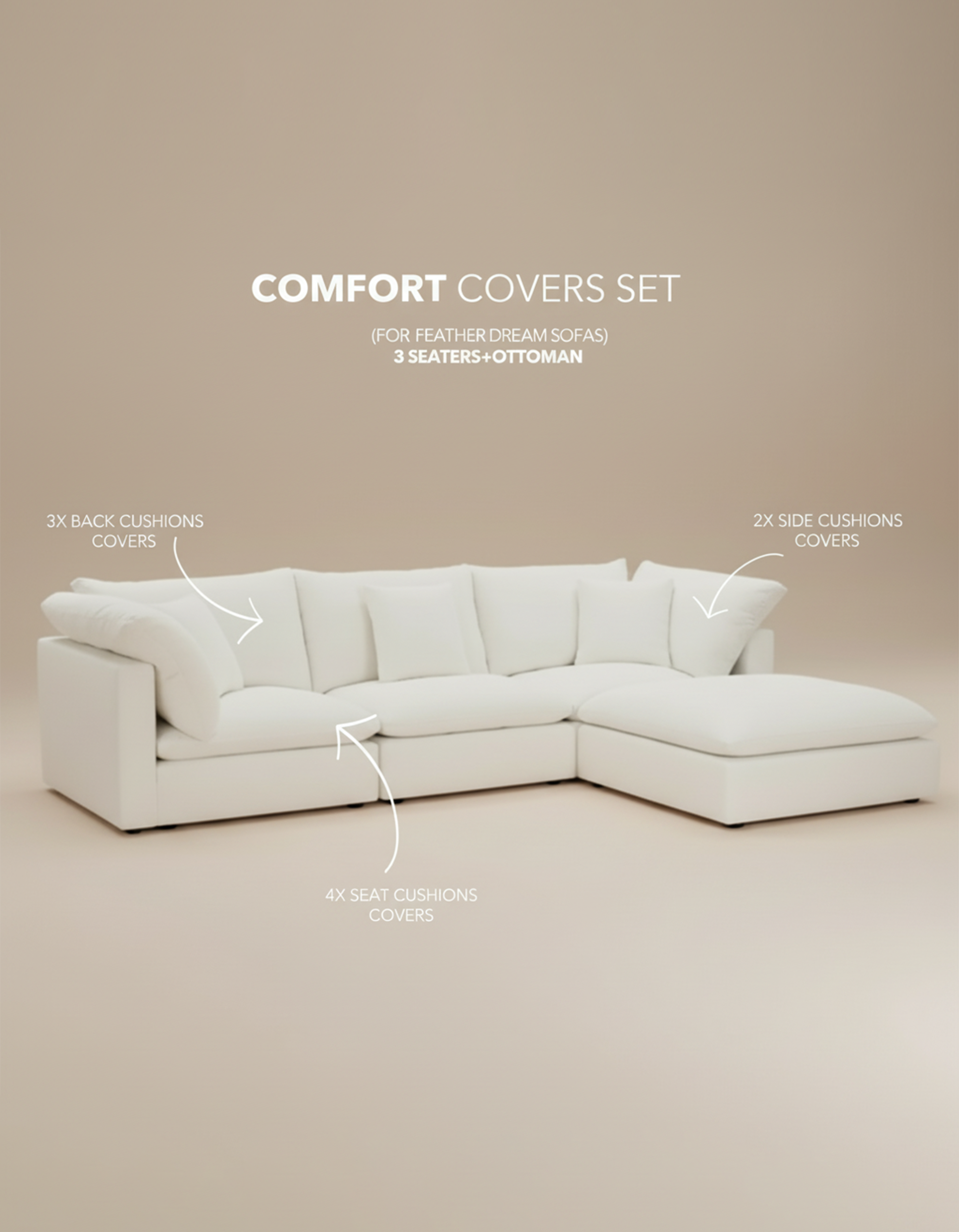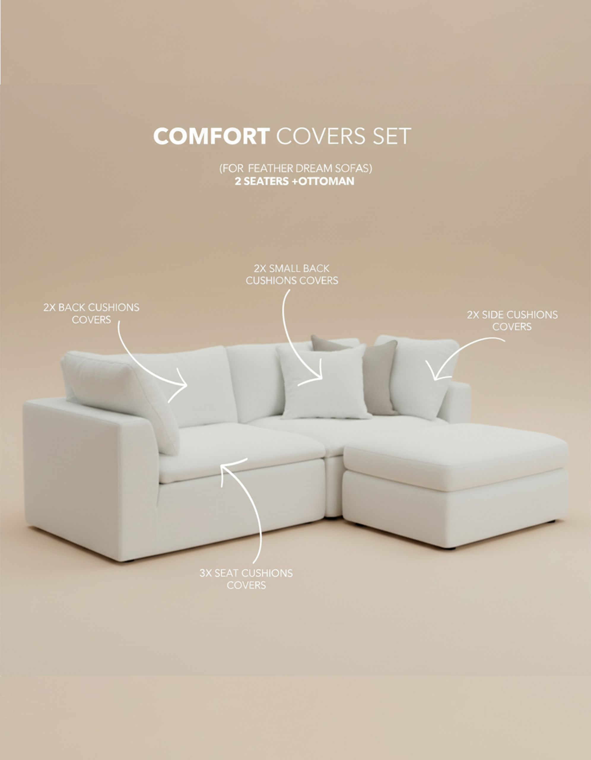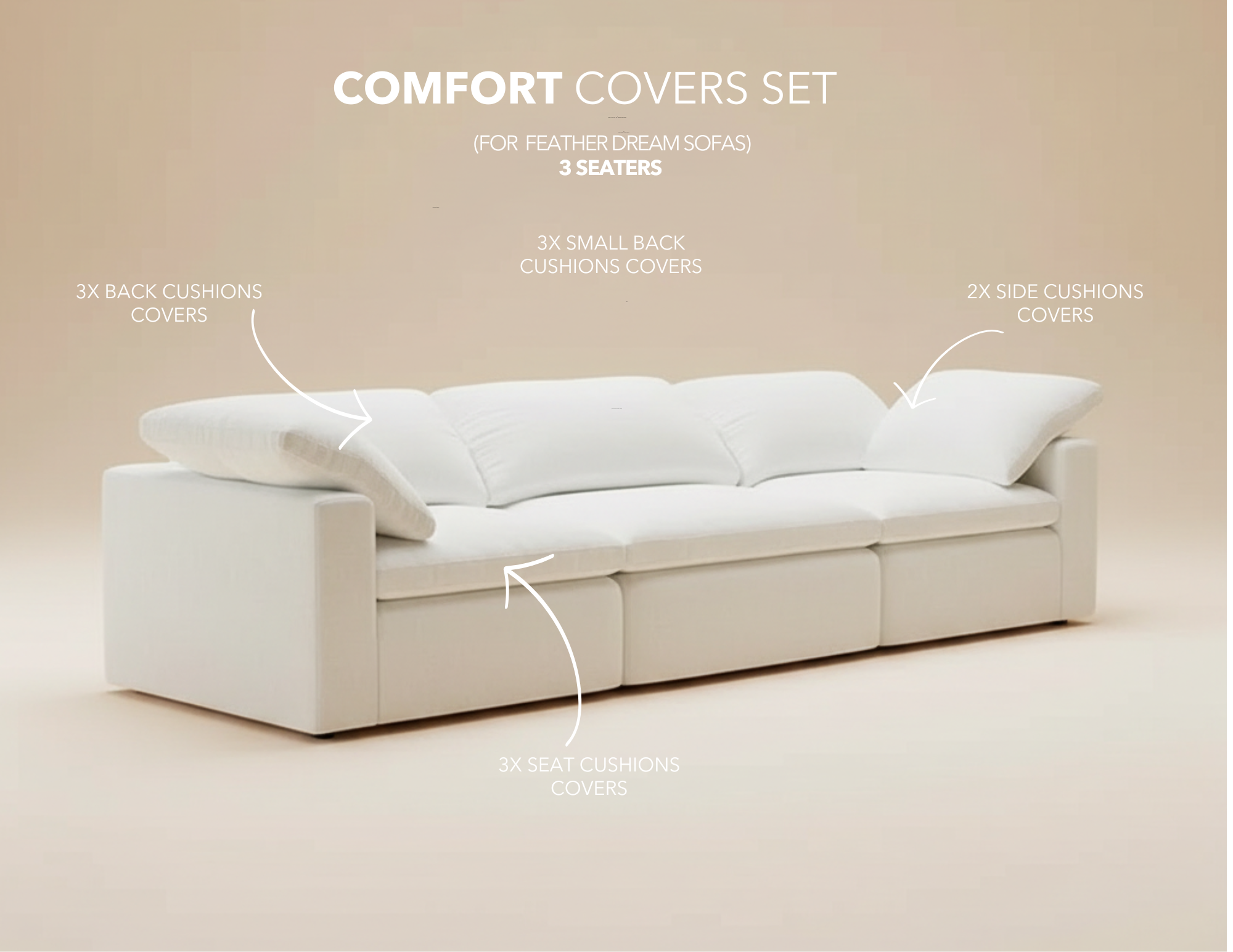 The comfort Cover Set transforms your sofa experience — not just in style, but in ease and practicality. Crafted from 100% natural linen or high-performance fabrics, these covers slide on smoothly, hugging every curve of your sofa while maintaining the cloud-like softness beneath.