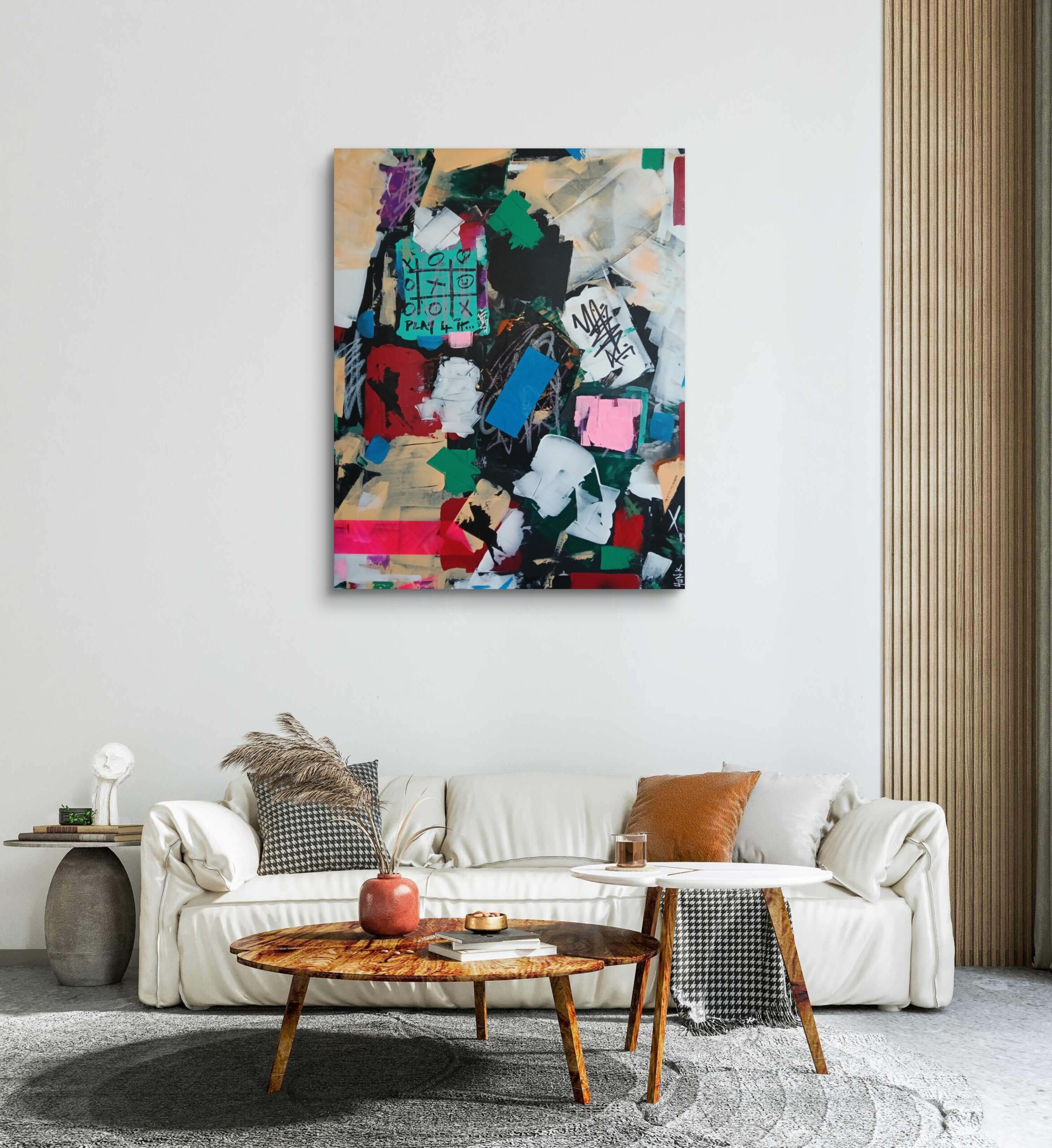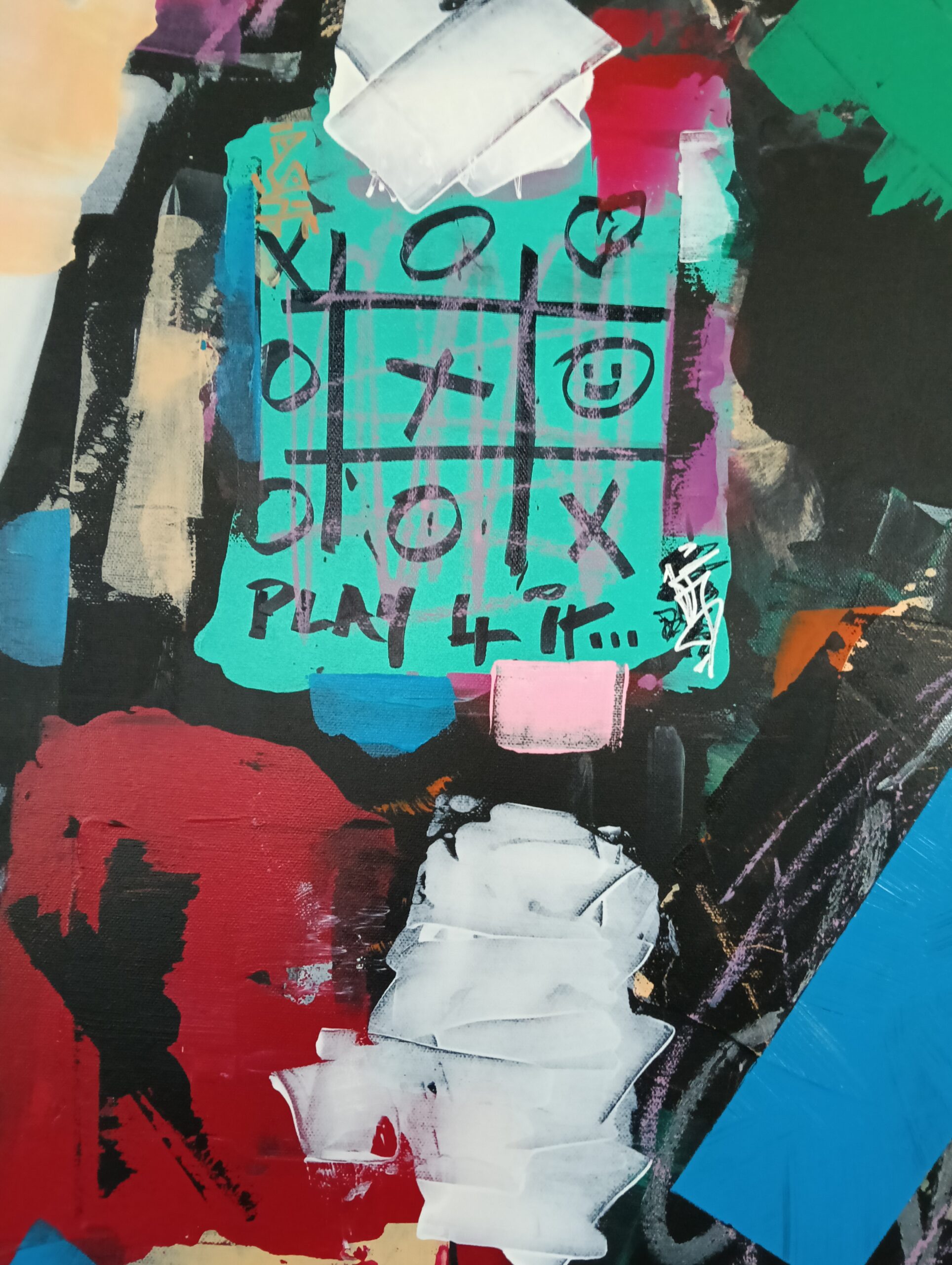 “I’ll Play You For It” is an abstract painting that captures the tension, energy, and competitive spirit of youth in urban estates. Through bold strokes and vivid colors, the artwork evokes the high-stakes games played in tight-knit communities, where the outcome often feels like a matter of pride or victory.