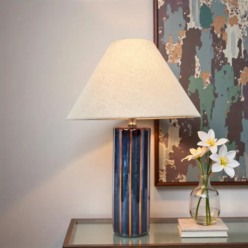 Choose between a sleek cylindrical or soft dome-shaped shade to suit your space. Whether placed in your bedroom or study, its gentle, switch-controlled glow creates a warm, inviting atmosphere — a perfect balance of function and refined design.
