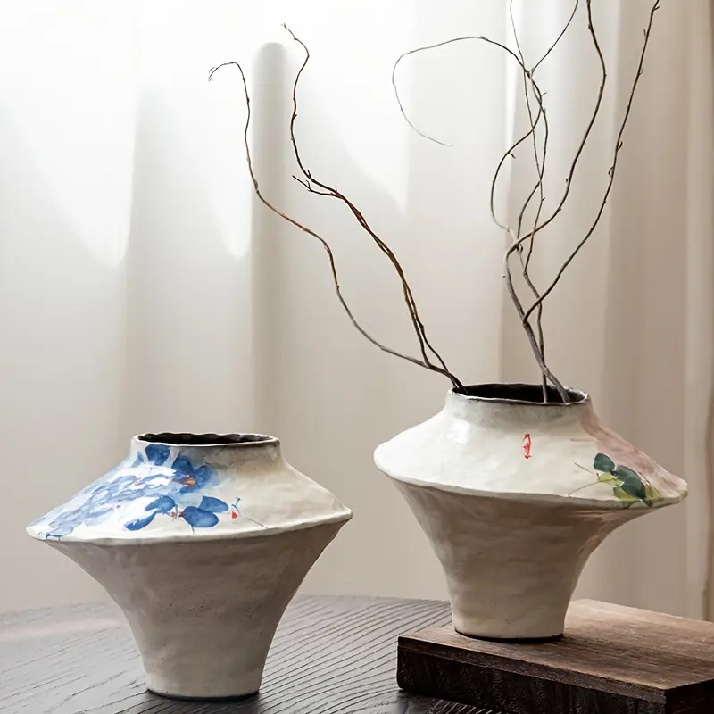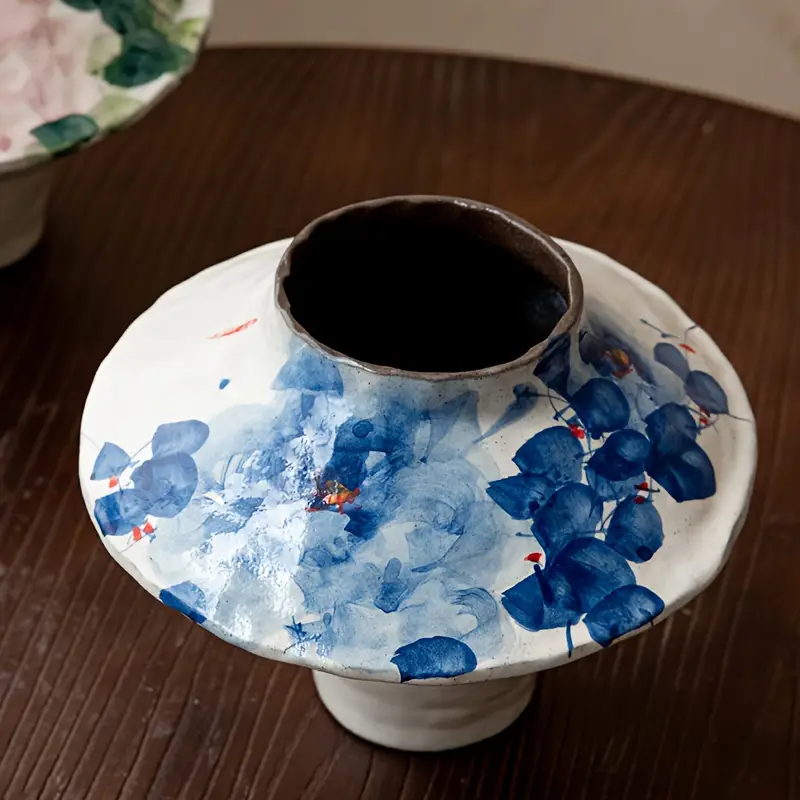 The Blossom Vase captures rustic charm with its delicate blue and white botanical design, expertly hand-painted to add timeless farmhouse warmth to any room.