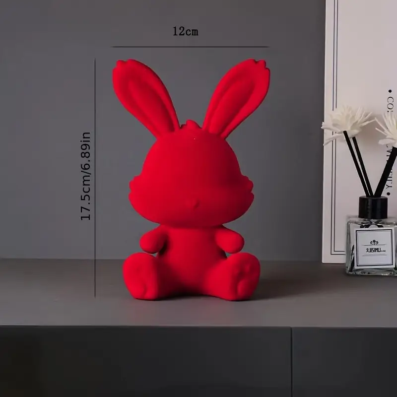 Red resin anime-inspired rabbit figurine—playful, sculptural décor for desks, entryways, or living rooms; perfect gift or festive accent.