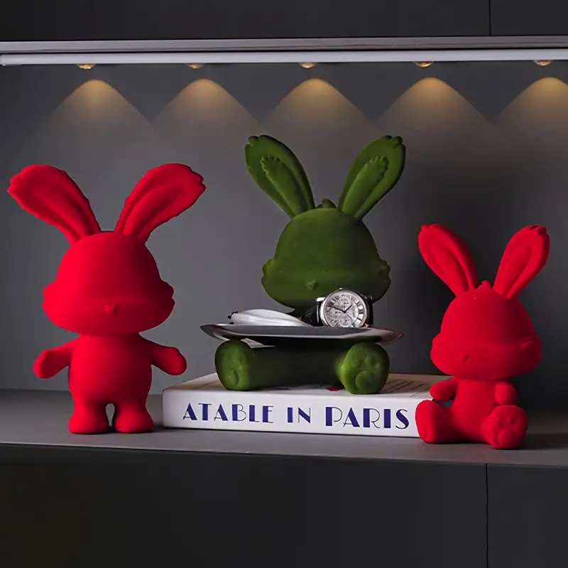Crimson Whimsy brings to life the playful soul of anime with the poise of sculptural elegance. This red resin rabbit isn’t just a statue ,it’s a mood-lifting accent, a spark of personality for your desk, entryway, or living room corner.